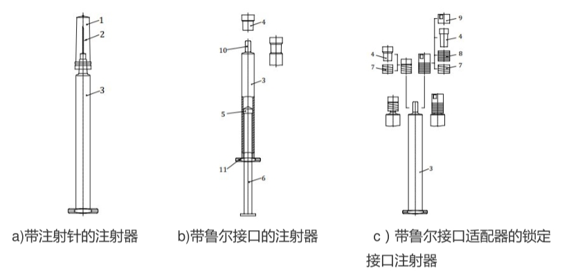 注射器的鎖定魯爾接口是用一種適當(dāng)?shù)膹椥圆牧献龀傻募饷狈忾],換而言之塑料的魯爾接口適配器依照SO 594-2和一個(gè)標(biāo)準(zhǔn)的螺紋組裝,再和魯爾接口注射器,這樣兩個(gè)部分共同形成錐形魯爾接口鎖。