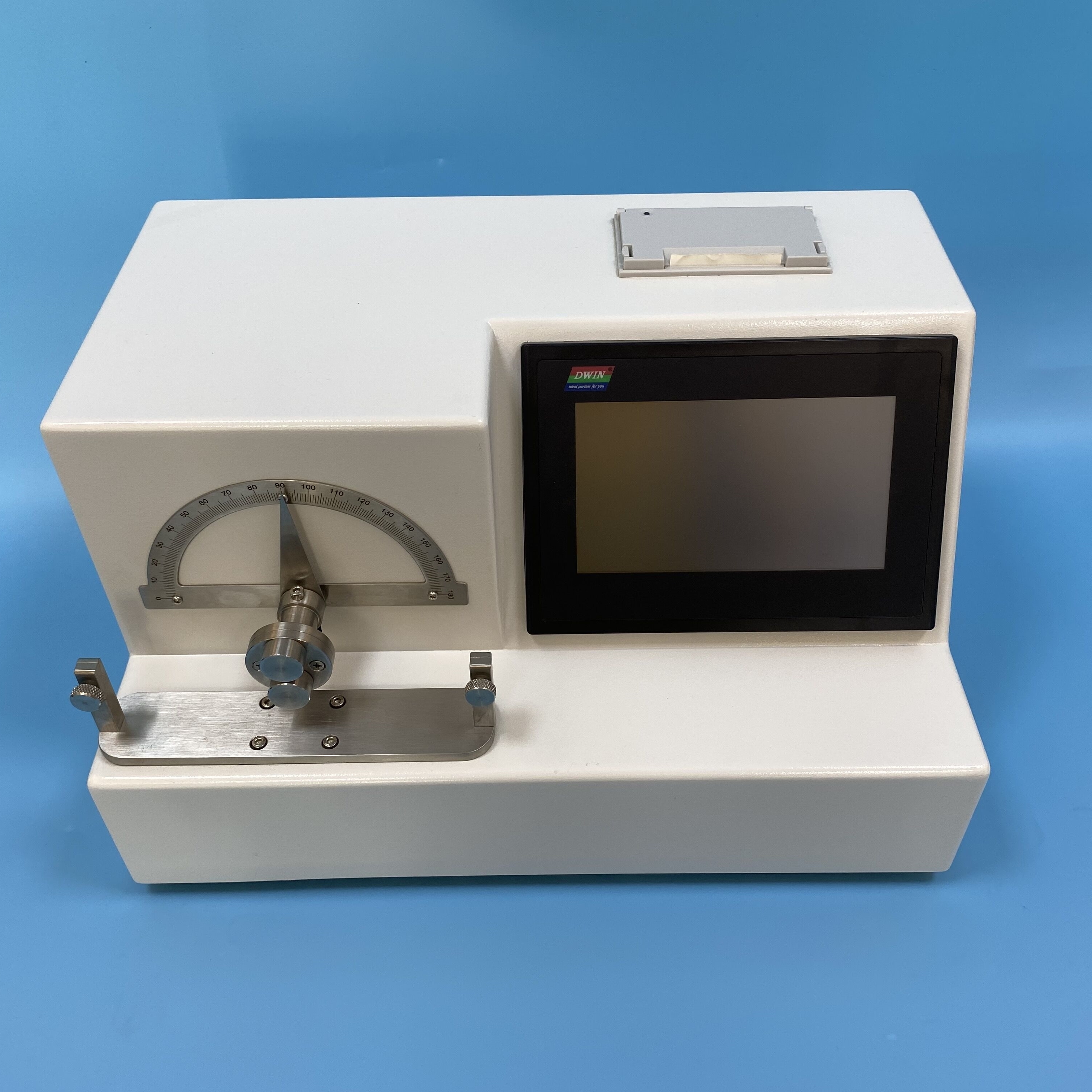 本設備是國家檢驗生產廠家產品性能的高效檢測設備。由可編程控制器,觸摸屏,力值傳感器,傳動裝置,機載打印機等組成,提供中英文菜單顯示,設定了人機對話各項參數自動運行測試模式。另增設生產單位,生產批次機打輸入,使測試結果更加規范化標準化。信息安全方面采用三級密碼,讓信息安全可靠。測試操控范圍包括:公稱規格、試驗次數、打印設定、測試、上行、下行、時間、標定等功能設定。另搭配機載打印機,實時顯示測試結果及導絲頭端柔軟度性數據。針對測試結果自動判斷,不合格啟動自動報警,并由打印機打印出測試數據及結果以供分析。